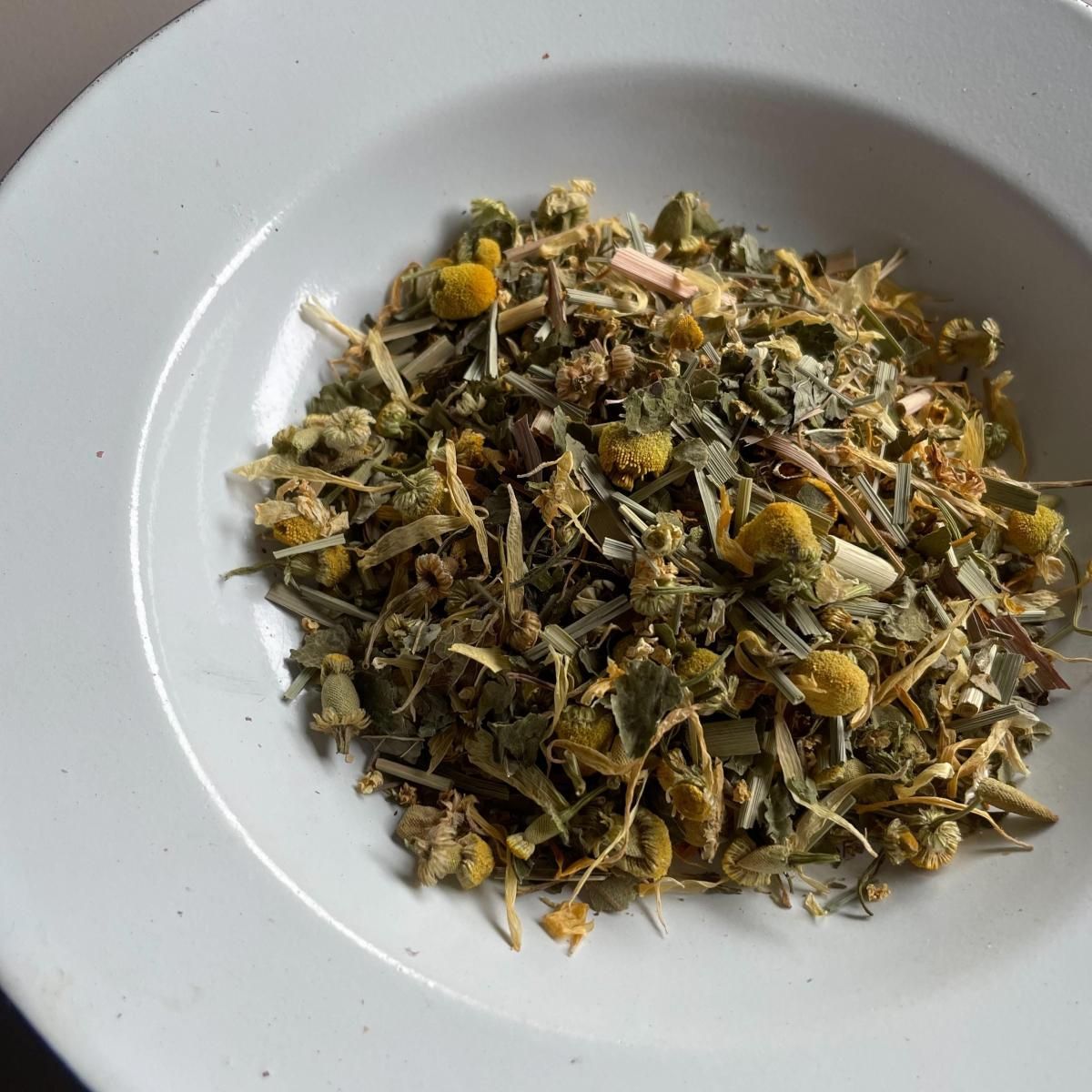 カモミールやレモンバームなどリラックスできるハーブをたっぷりブレンドしました。心落ち着かぬ時やゆっくりしたい時に。癒しのひと時をおすごしください。